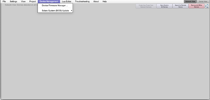 In the top-left corner, open Device Management and select Device Firmware Manager.