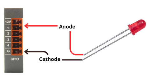 Open the GPIO Output Card and assign the correct GPIO channel that the LED is connected to.