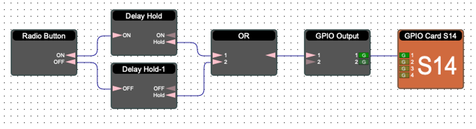 Route the Radio Button into both Delay Hold-1 and Delay Hold-2.